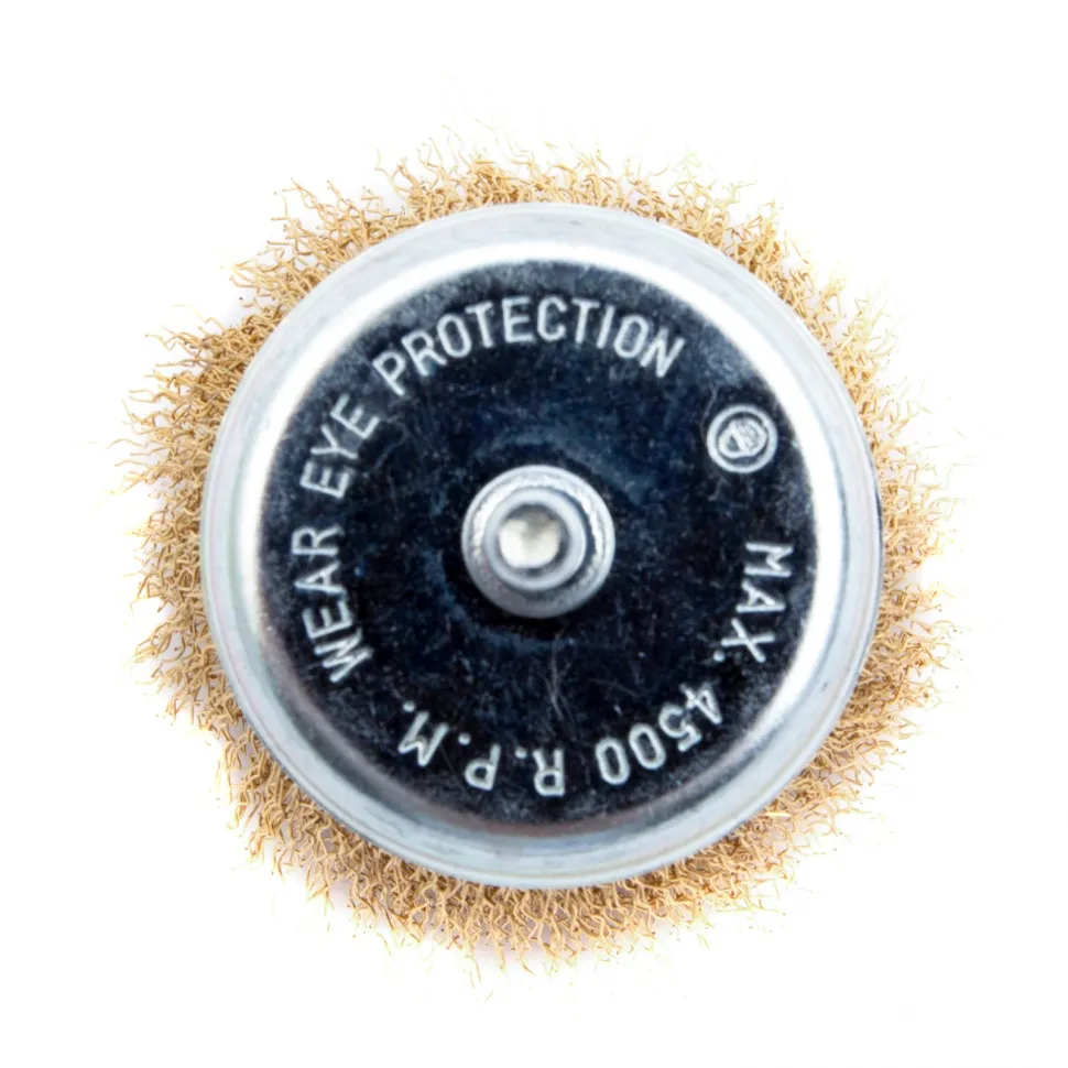 Щетка для дрели «чашка» Matrix 74478 диаметром 75 мм, со шпилькой, с щетиной из латунированной витой проволоки, используется для очистки металлических, деревянных и пластиковых поверхностей от незначительных загрязнений и остатков лакокрасочных покрытий. Помогает подчеркнуть структуру материала или придать ему шероховатость. Форма чашки позволяет обрабатывать плоские участки большой площади. Хвостовик диаметром 6 мм устанавливается в патрон электродрели, поддерживающей скорость 4500 об/мин. Во время работы нужно использовать средства индивидуальной защиты — респиратор, очки, наушники, спецодежду и обувь.ПреимуществаВитая проволока сохраняет свою форму после снятия нагрузок, поэтому щетка подходит для интенсивного использования.Латунированное покрытие щетины и цинковое — корпуса обеспечивают защиту щетки от коррозии.Оснастка изготовлена на крупном заводе со строгим контролем качества на всех этапах производства, что подтверждает ее надежность.Щетка пригодится как профессиональным, так и домашним мастерам.