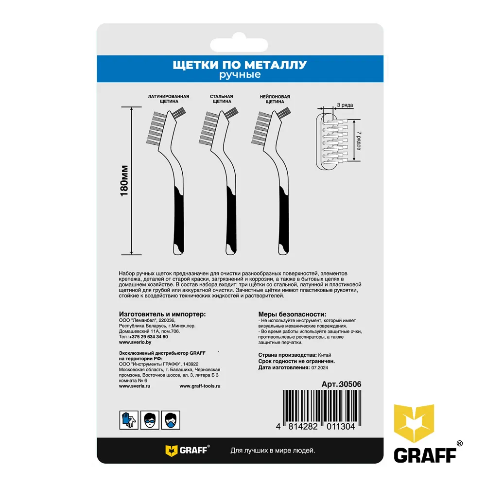 Набор ручных щеток предназначен для очистки разнообразных поверхностей, элементов крепежа, деталей от старой краски, загрязнений и коррозии, а также в бытовых целях, в домашнем хозяйстве, в строительстве и ремонте.