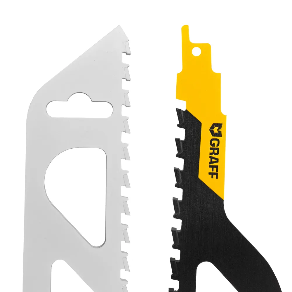 Полотно (пилка) для сабельной пилы по газосиликату 455 мм S2243HM HCS GRAFF – это надежный и высокоэффективный инструмент, используемый для распила газо- и пенобетона, шлакоблоков, цементно-стружечных плит (ЦСП), а также для газосиликатных блоков, кирпича и строительной древесины.