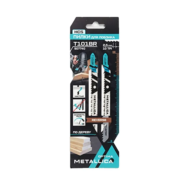 Пилки д/лобзика METALLICA Optima T101BR, 100/75мм шаг 2,5мм, HCS обрат/зуб, чист. рез, по дер. 2шт