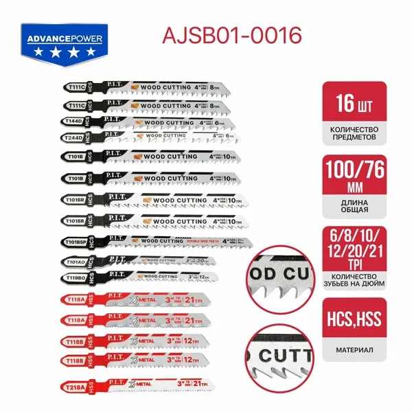 Набор пилок для лобзиков AJSB01-0016 идеальный выбор для разных работ с различными материалами. В комплект входят пилки по дереву, для криволинейных резов в дереве, по металлу.