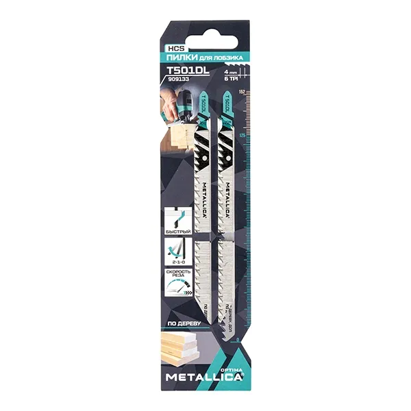 Пилки д/лобзика METALLICA Optima T501DL 152/126мм шаг 4мм, HCS быстрый рез, по дереву 2шт наличный и безналичный расчет