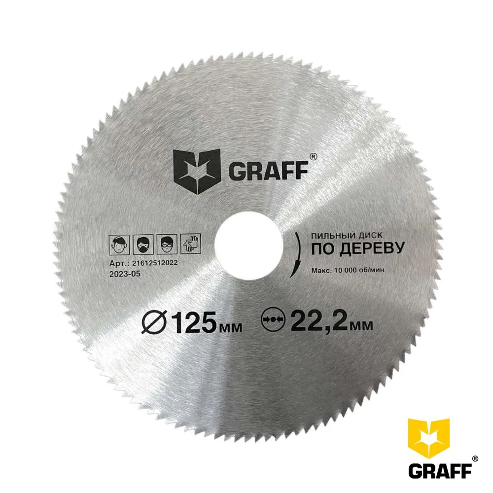 Пильный диск по дереву 125х1,0/1,9х22.23мм х120Т GRAFF отличается макисмальной безопасностью: большое количество близко расположенных зубьев с выступом до 2 мм гарантируют отсутствие отдачи и повышенный контроль над диском во время работы.