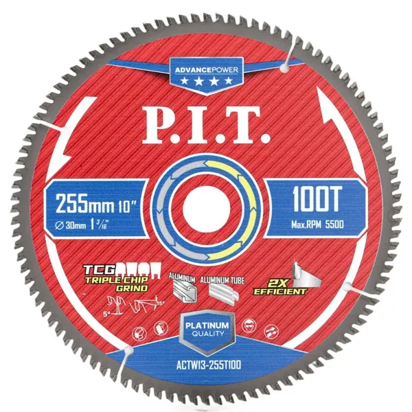 Диск пильный с твердосплавными напайками по алюминию для циркулярных и торцовочных пил ACTW13-255T100 отличный вариант для раскроя алюминия, пластика, алюминиевого и оконного профиля.
