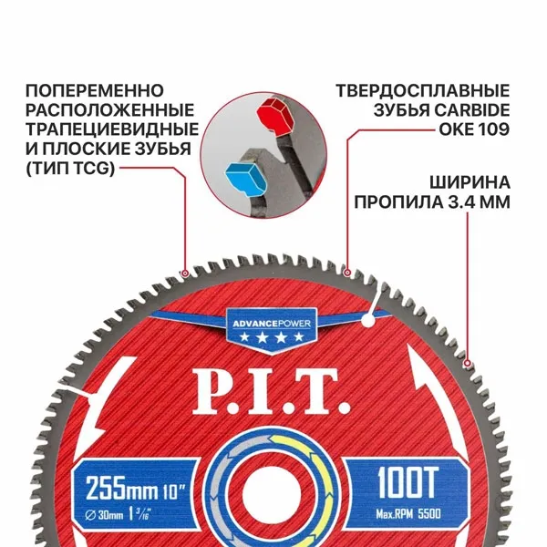 Попеременно расположенные трапециевидные и плоские зубья обеспечивают долгий срок службы и точный чистый рез: зуб в форме трапеции выполняет черновое пиление, а плоский зуб обеспечивает чистоту кромок.