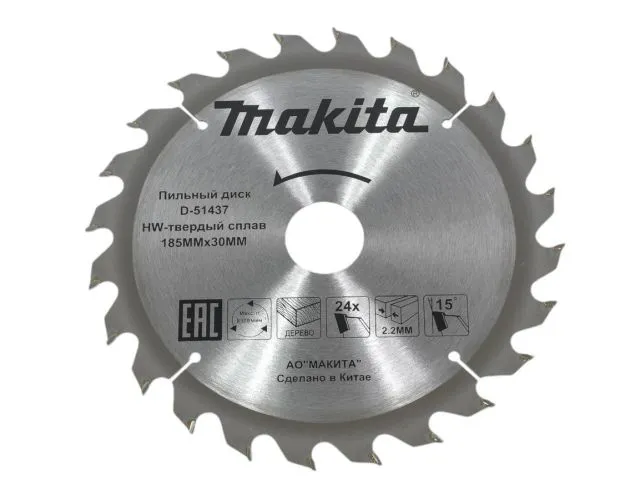 Диск пильный по дереву 185x30/20x2.2/1.4 мм, 24T Makita D-51437 служит для использования с дисковой электропилой. Демонстрирует высокую производительность при работе по заготовкам из цельной древесины, древесным столярным плитам.