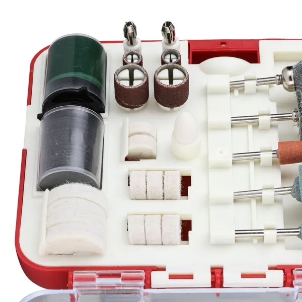 Набор насадок для гравировальных машин ASET11-0071 состоит из 71 предмета. В наборе собраны принадлежности для различных видов работ по разным материалам: металл, пластик, цветные металлы, дерево и древесно-стружечные плиты. Входящие в набор 2 цанговых патрона разного диаметра обеспечат возможность использования насадок с различным диаметром хвостовика. Пластиковый кейс имеет оделения с фиксацией для насадок для удобства хранения и транспортировки. *фотография носит информационный характер, внешний вид товара и упаковки может отличаться.