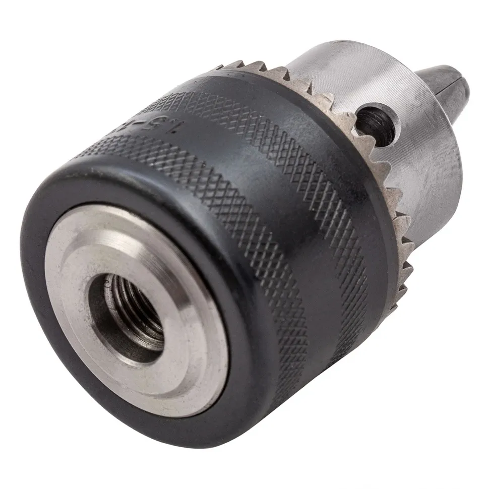 Ключевой патрон Matrix 16817 с посадочным диаметром 1/2 дюйма подходит для фиксации оснастки диаметром 1,5-13 мм в дрели. Высококачественное исполнение позволяет использовать его для профессиональных целей.ПреимуществаПатрон с кулачками твердостью 54-56 HRC выдерживает интенсивное использование, может применяться в ударном режиме.Ключевой механизм обеспечивает большое усилие затяжки оснастки, что является гарантией ее надежной фиксации.За счет рельефной поверхности с патроном удобно работать, т.к. он не проскальзывает в руках.Благодаря четкой маркировке на корпусе патрона его можно легко найти среди других.К патрону прилагается ключ для смены сверл, поэтому его не придется покупать отдельно.