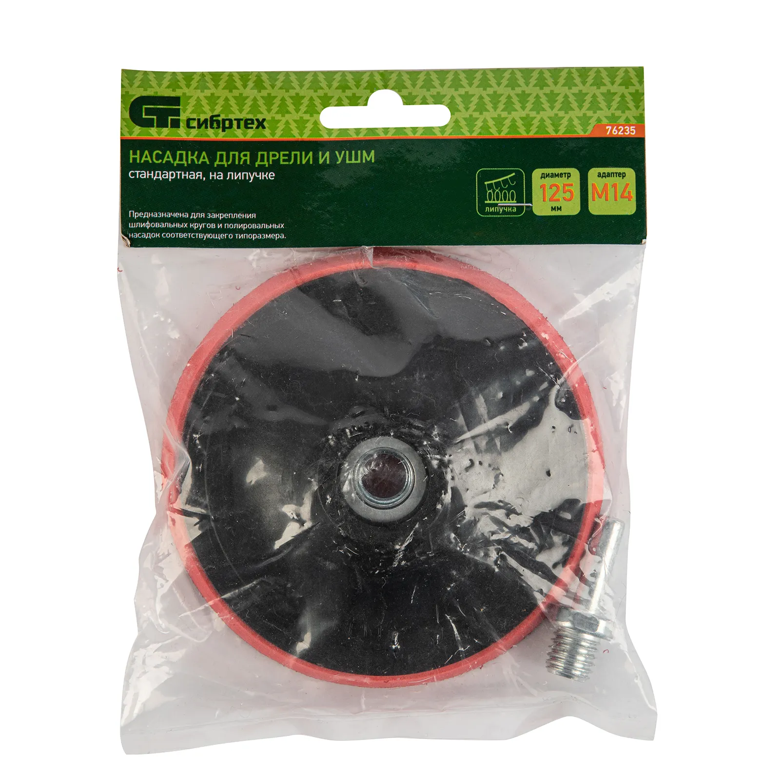 Насадка (опорная тарелка) ТМ Сибртех 76235 предназначена для проведения шлифовальных и полировальных работ с помощю абразивных кругов и полировальных насадок с креплением velcro (под липучку) соответствующего типоразмера. Выгодная ценаУниверсальное применение - для закрепления различных абразивных кругов и полировальных насадок с системой крепления velcro (под липучку).Защита от коррозии - гайка и переходник оцинкованыДля установки на УШМ и дрель (переходник c М14 на d8 в комплекте)