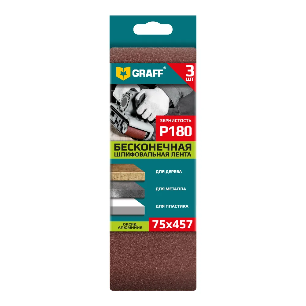 Лента шлифовальная 75 мм Р180 бесконечная длина 457 мм GRAFF наличный и безналичный расчет