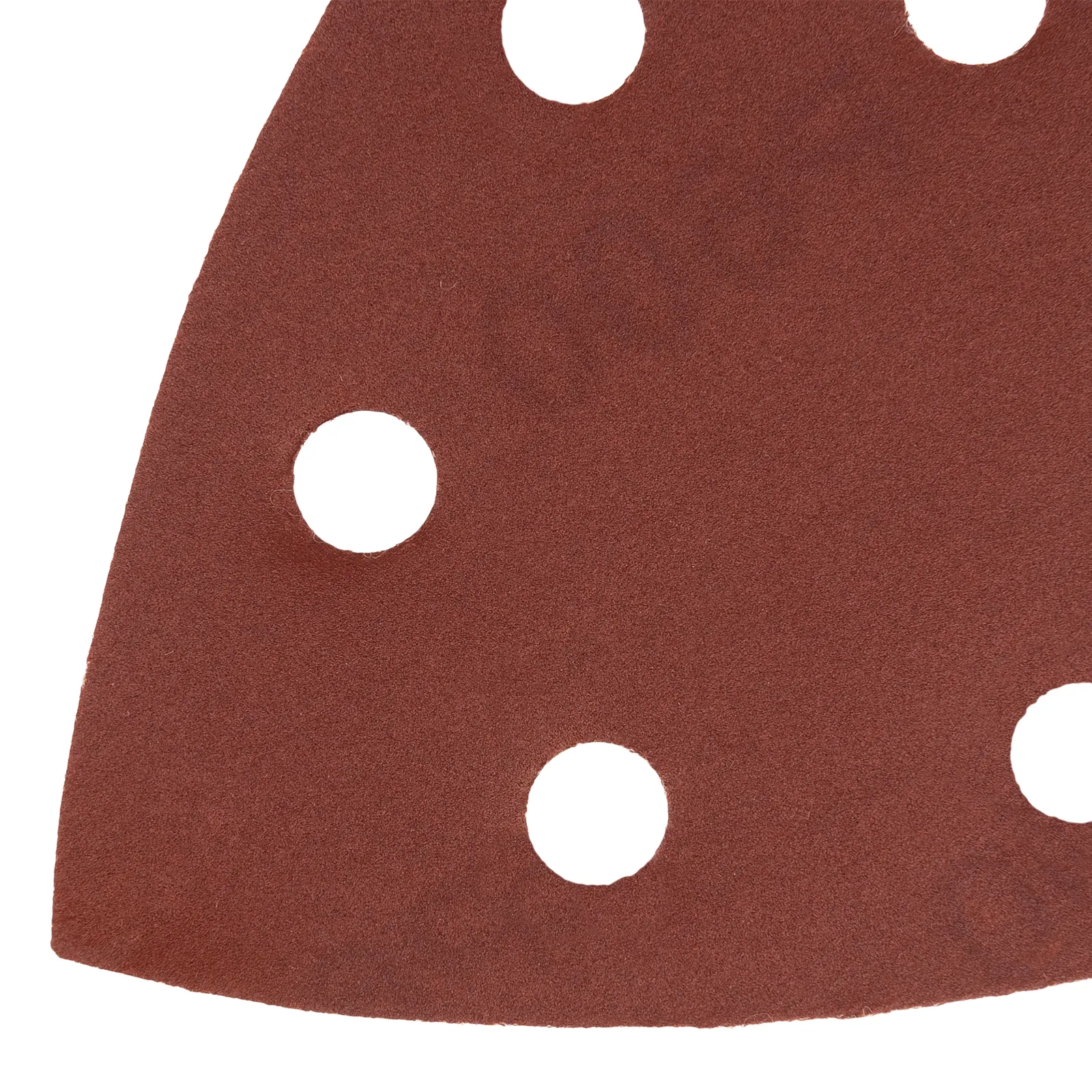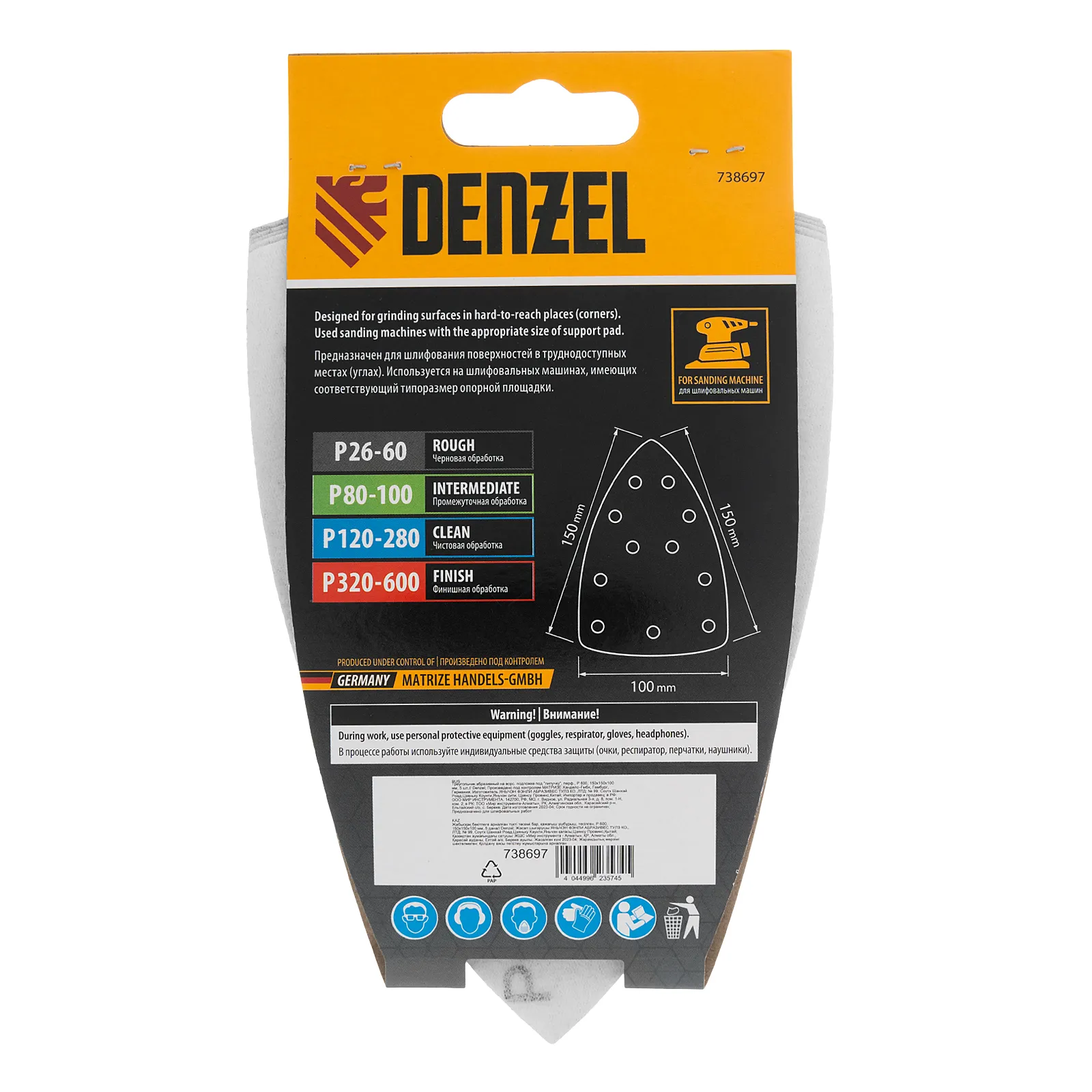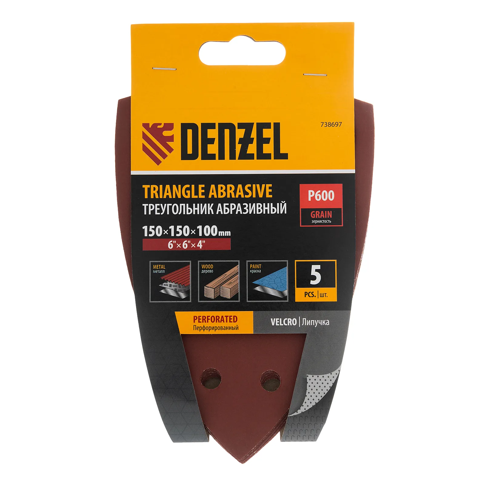 Абразивный перфорированный треугольник на ворсовой подложке «под липучку» Denzel 738697 размером 150 х 150 х 100 мм, 5 шт. в упаковке, имеет зернистость P 600 и предназначен для финишной обработки металлических, деревянных и других деталей. Позволяет устранять с поверхности мельчайшие шероховатости, удобен для работы в углах и других труднодоступных местах. Треугольник совместим с плоскошлифовальной машиной Denzel 27614, также подходит для установки на другие шлифмашины с размером рабочей платформы 150 х 150 х 100 мм. Преимущества Высокая производительность — зерна абразива изготовлены из оксида алюминия 1 класса. Эффективность — перфорированная поверхность обеспечивает быстрый отвод пыли. Быстрая подготовка к работе — крепление «велкро» позволяет установить треугольник за несколько секунд. Удобная комплектация по 5 штук — набора хватит для выполнения большого объема работ.