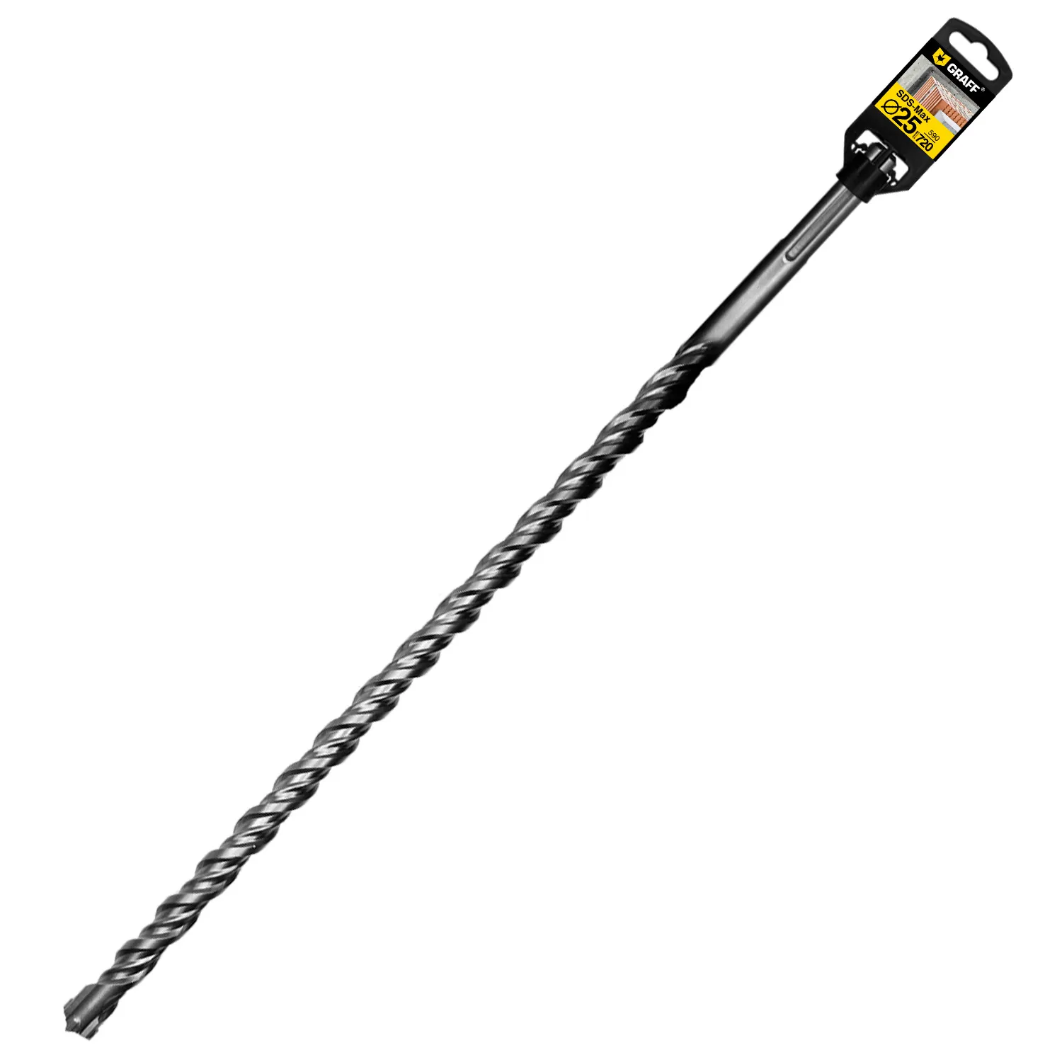 Сверло (бур) по бетону 25x590x720 мм для перфоратора SDS max GRAFF предназначен для сверления бетона, кирпича, камня, газосиликата и других твердых материалов