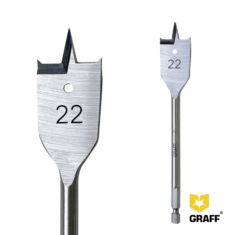 Сверло перьевое (перовое) по дереву 22,0x150 мм GRAFF изготовлено из высококачественной износостойкой стали С45.