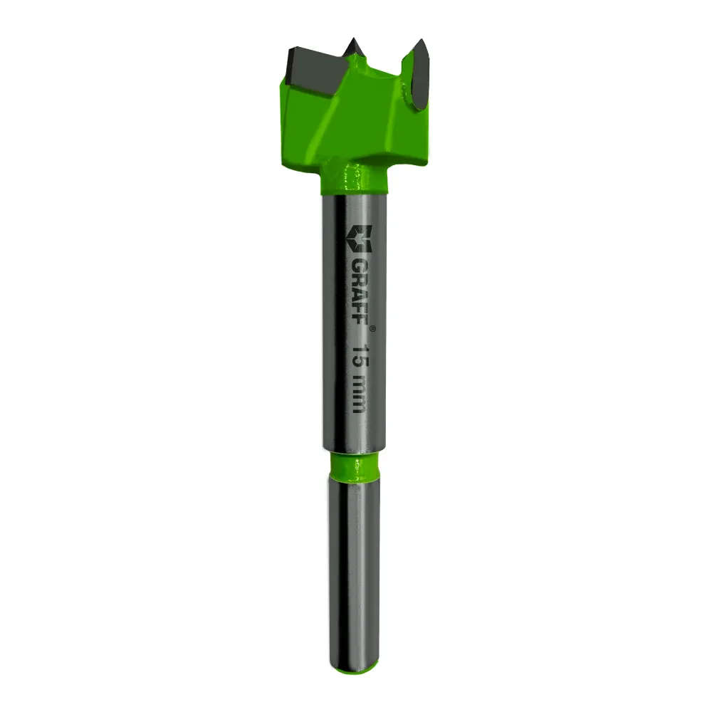 Усиленное сверло Форстнера изготовлено из углеродистой конструкционной нелегированной стали 45 с индустриальными режущими напайками из вольфрам-кобальтового твердого сплава YG8 c содержанием кобальта 8%, подходит для тяжелых работ в древесине любого вида.