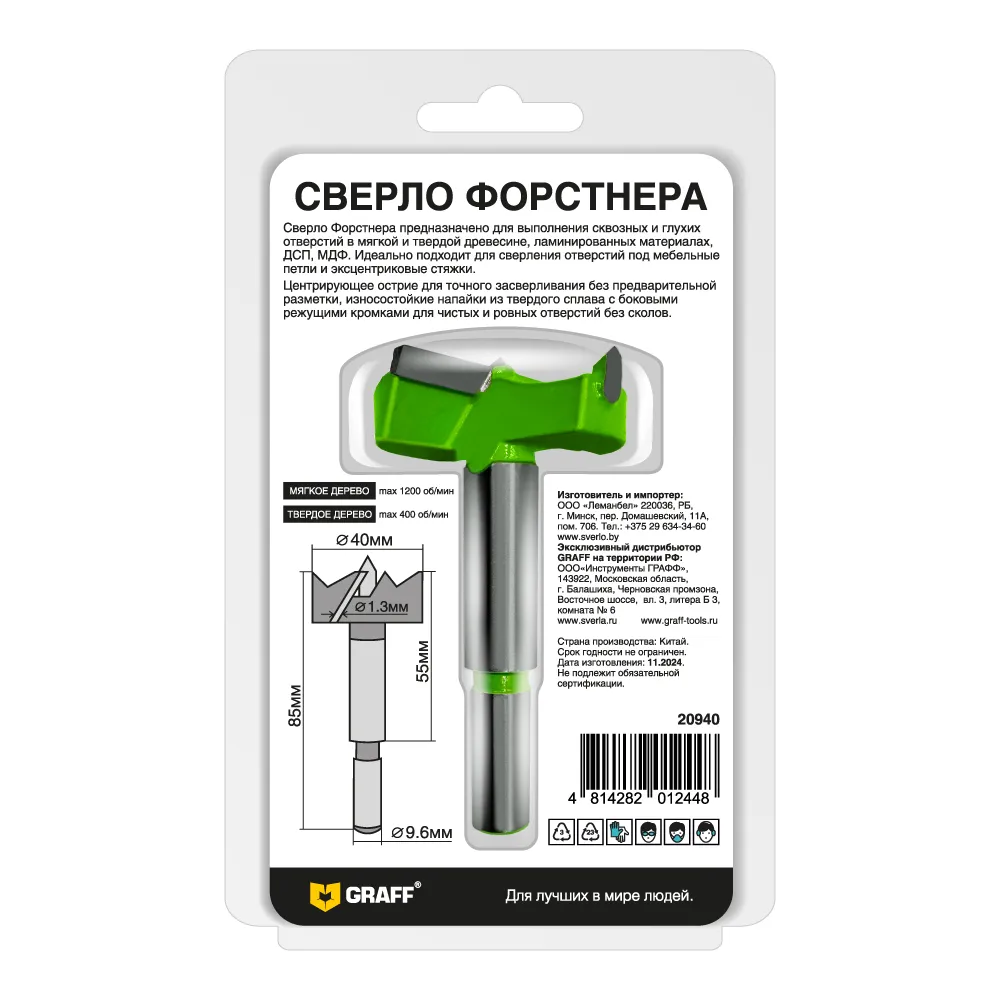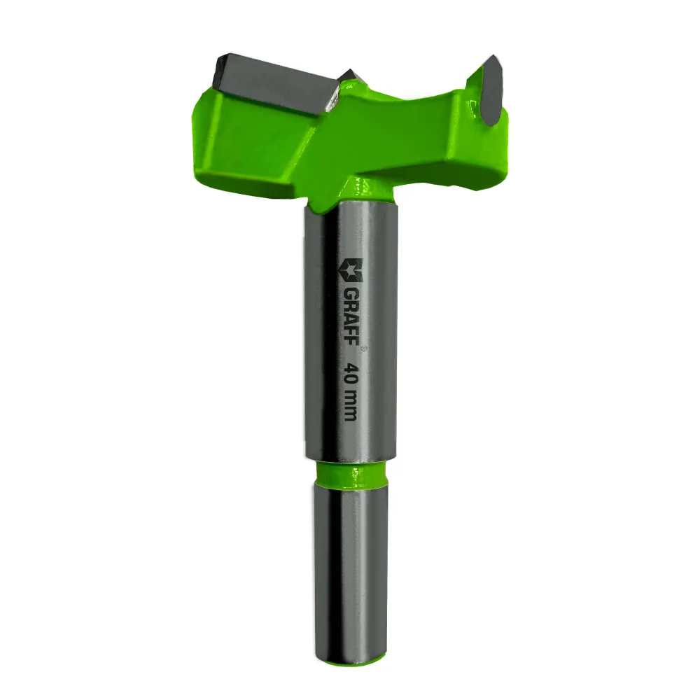 Усиленное сверло Форстнера изготовлено из углеродистой конструкционной нелегированной стали 45 с индустриальными режущими напайками из вольфрам-кобальтового твердого сплава YG8 c содержанием кобальта 8%, подходит для тяжелых работ в древесине любого вида.