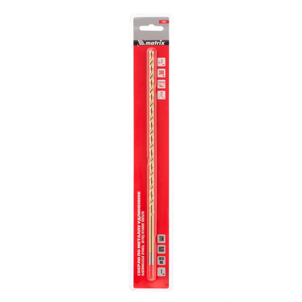 Спиральное сверло Matrix 714307 диаметром 7 мм, из стали HSS, с нитридтитановым покрытием, с удлиненным профилем 300 мм, позволяет осуществлять сверление глубоких отверстий в металле. Угол заточки 118 градусов делает возможной работу с черными металлами, сталью, чугуном и твердой бронзой. Благодаря высококачественному исполнению сверла подходит для профессионального использования с интенсивными нагрузками.ПреимуществаСверло изготовлено из универсальной быстрорежущей стали HSS, что обеспечивает его надежность.Нитридтитановое покрытие гарантирует высокую степень защиты оснастки от коррозии и стойкость к перегреву.Вышлифованный профиль имеет ряд преимуществ: высокую точность исполнения, соблюдение геометрии и углов заточки режущей части, а также улучшенный отвод шлама.За счет подточки поперечной кромки для работы со сверлами не нужно осуществлять предварительное накернивание, а в процессе эксплуатации уменьшается осевое усилие.Цилиндрический хвостовик является универсальным, поэтому оснастка подходит к большинству типов дрелей.