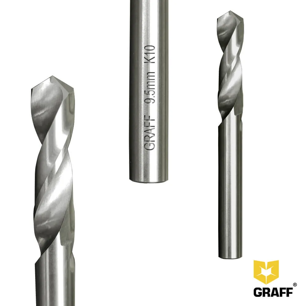 Сверло цельнотвердосплавное (монолитное) 9,5 мм К10 GRAFF с цилиндрическим хвостовиком применяется для обработки почти всех марок стали (в том числе высокопрочной и нержавеющей, в том числе идеально подходит для закаленных сталей), титановых сплавов, чугуна, бронзы, латуни, меди и других труднообрабатываемых материалов.