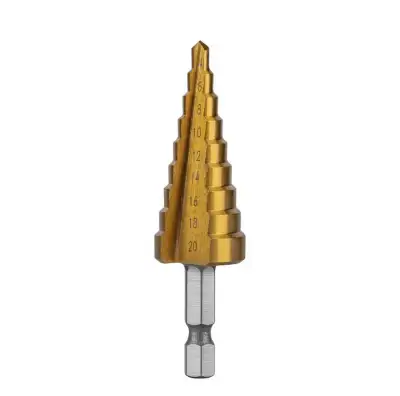Ступенчатое сверло приспособлено для сверления различных типов стали, цветных металлов, меди, латуни и алюминия, нержавеющей стали, пластика и дерева. Позволяет сверлить точные отверстия. Оно может использоваться в кузовных мастерских, автомастерских или в работе слесарей, установщиков и электриков. Для профессионального использования.