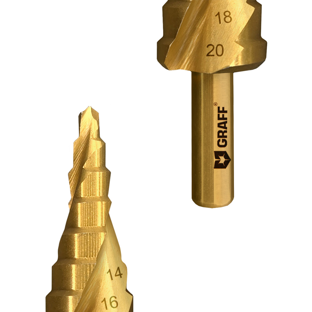 Сверло по металлу 4 - 20 мм ступенчатое TIN GRAFF