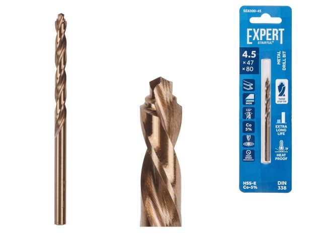 Назначение: для сверления отверстий в конструкционных углеродистых и легированных сталях, нержавеющих и жаростойких сталях прочностью до 1000 N/mm2, титана и его сплавов, бронзы, латуни, цветных металлах, чугуне, твердом пластике. Сверло спиральное изготовлено из высококачественной быстрорежущей стали с уже вышлифованным профилем. Выход стружки легче, температура нагрева и биение сверла в патроне меньше, стойкость режущей части выше. Отверстия имеют высокую точность. Подточка поперечных режущих кромок позволяет начинать сверление без предварительного засверливания центрирующим сверлом или кернения. Повышенный ресурс использования. Обладают повышенной производительностью, износостойкостью и красностойкостью. Максимально точное и аккуратное сверление. Дополнительная твердость и повышенная теплостойкость за счет содержания в сплаве кобальта. Подходят для профессионального использования;