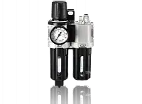 Фильтр влагоотделитель с редуктором и лубрикатор 3/8", объем 500 мл, 5 мкм MIGHTY SEVEN SV-2330. Блок устанавливается в пневмолинию и предназначен для подготовки сжатого воздуха (фильтрация, регулировка и добавление масла) для пневматического инструмента и оборудования.
