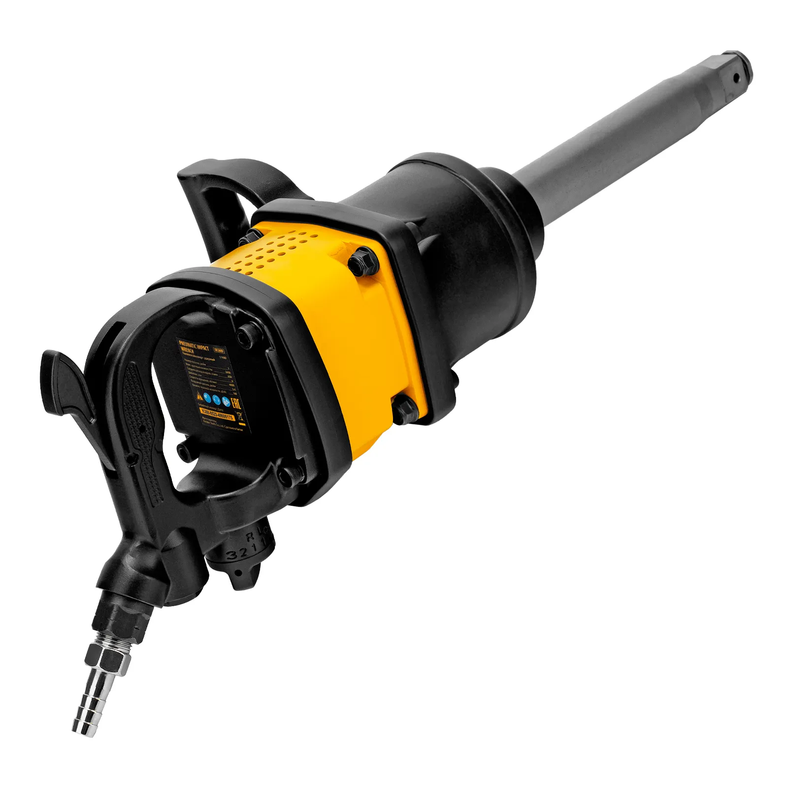 Комплектация | Гайковерт - 1 шт, Штуцер - 1 шт, Дополнительная рукоятка - 1 шт, Гаечный ключ - 1 шт, Руководство по эксплуатации и гарантийный талон - 1 шт |