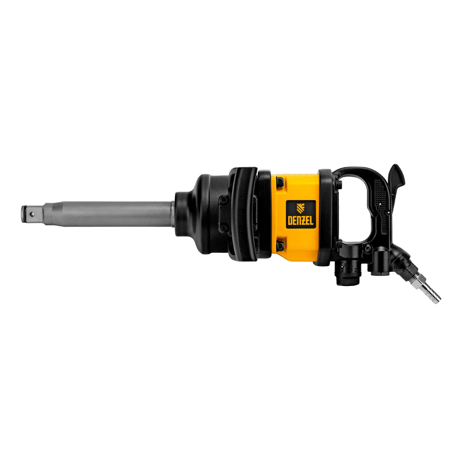 Ударный пневмогайковерт Denzel IW2600 57490 с присоединительным квадратом 1" обеспечивает скорость вращения вала 4000 об/мин и развивает крутящий момент до 2600 Нм. Предназначен для монтажа и демонтажа резьбовых соединений. Алюминиевый корпус выдерживает высокие нагрузки, инструмент подходит для профессионального использования. Преимущества Эффективная работа — ударный механизм Twin Hammer обеспечивает высочайший крутящий момент на старте и мгновенный сбалансированный удар, благодаря чему справляется даже с заржавевшим крепежом. Удобный выбор параметров работы — регулировка крутящего момента (3 режима вперед + 3 назад) осуществляется при помощи поворотного переключателя. Комфортная работа — эргономичная рукоятка обеспечивает надежный хват. Готовность к работе — в комплект поставки входит штуцер 3/4" для подключения к компрессору. Гарантия 3 года — надежность инструмента подтверждена производителем.