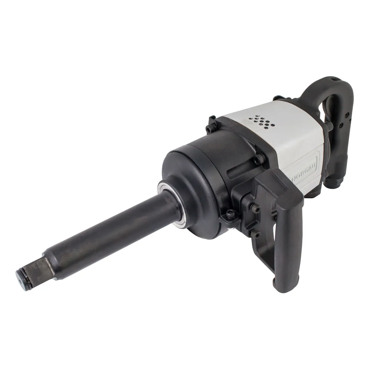 Пневматический гайковерт 1”, ударный, тип NIW15-270SL. Двигатель развивает мощный крутящий момент, достигающий 2700 Нм. Высокопроизводительный мотор позволяет решать задачи любого масштаба в рамках производств. Эргономичная рукоятка и пусковой курок упрощают контроль и управление в работе. Удобный переключатель реверса располагается так, чтобы избежать риска случайного срабатывания. Задний отвод воздуха повышает комфорт в работе. Обороты холостого хода составляют 5000 об/мин, потребление воздуха 1600 л/мин. Масса инструмента 12,2 кг.