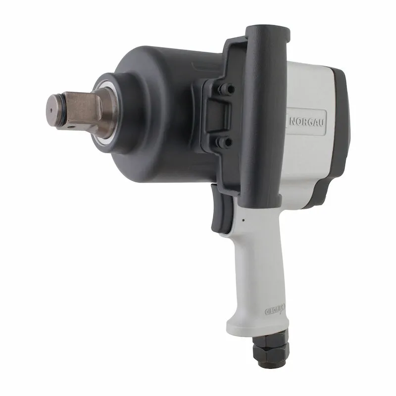 Гайковерт пневматический ударный 1” в алюминиевом корпусе, тип NIW15-250PS. Позволяет легко справиться с приржавевшими, закисшими и прикипевшими резьбовыми соединениями. Максимальный крутящий момент 2500 Нм, обороты холостого хода 4800 об/мин. Потребление воздуха 1380 л/мин. Безопасное использование инструмента за счет выводящего через рукоятку выхлопа воздуха. Двигатель с плавным ходом регулятора мощности. Размер шланга для подключения не менее 19 мм, резьба на штуцере подачи воздуха 1/2. Масса 10,2 кг.