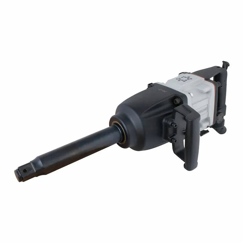 Гайковерт ударный пневматический с высоким крутящим моментом – 3390 Нм, тип NIW15-339SL. Повышенная производительность и 4-х позиционный регулятор мощности позволяют подобрать оптимальный режим работы для любых задач. Жёстко закреплённая боковая рукоятка обеспечивает безопасное удержание и контроль при работе. Двойной ударный механизм. Обороты холостого хода 4300 об/мин, потребление воздуха 2400 л/мин. Размер шланга для подсоединения не менее 19 мм. Масса 14,85 кг.