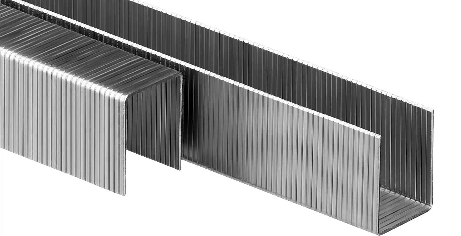 Крепление различных материалов к поверхностям из фанеры, дерева, ДСП с помощью электрического или пневматического степлера. Применяются в пневматических степлерах KRAFTOOL, RAPID, PREBENA, NOVUS, SCHNEIDER.