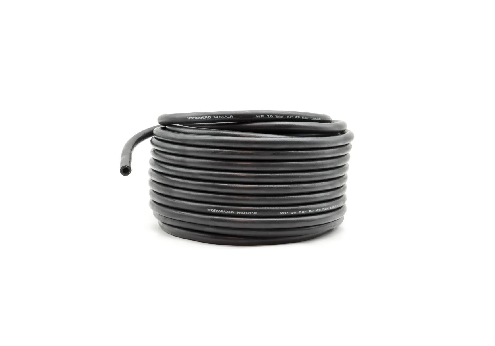 - Шланг резиновый с нитяным усилением Nordberg NBR/CR Ø10х18,5 мм предназначен для подачи под давлением сжатого воздуха, инертных газов, дизельного топлива, бензина, масел, щелочей и кислот (кроме азотной) с концентрацией до 20%. Выдерживает давление до 48 бар и температуру от -50°C до + 90°C