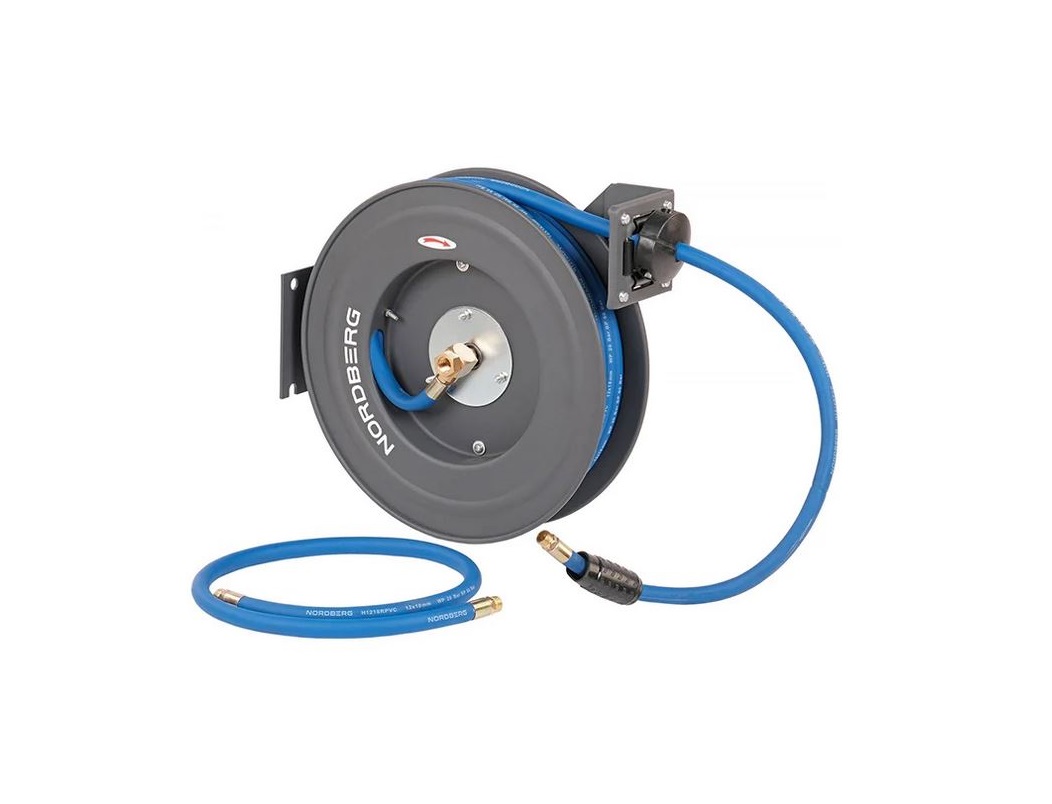 Воздушный шланг на катушке NORDBERG HR1215RPVC обеспечит качественное соединение воздухонагнетательного оборудования с различным пневматическим инструментом.