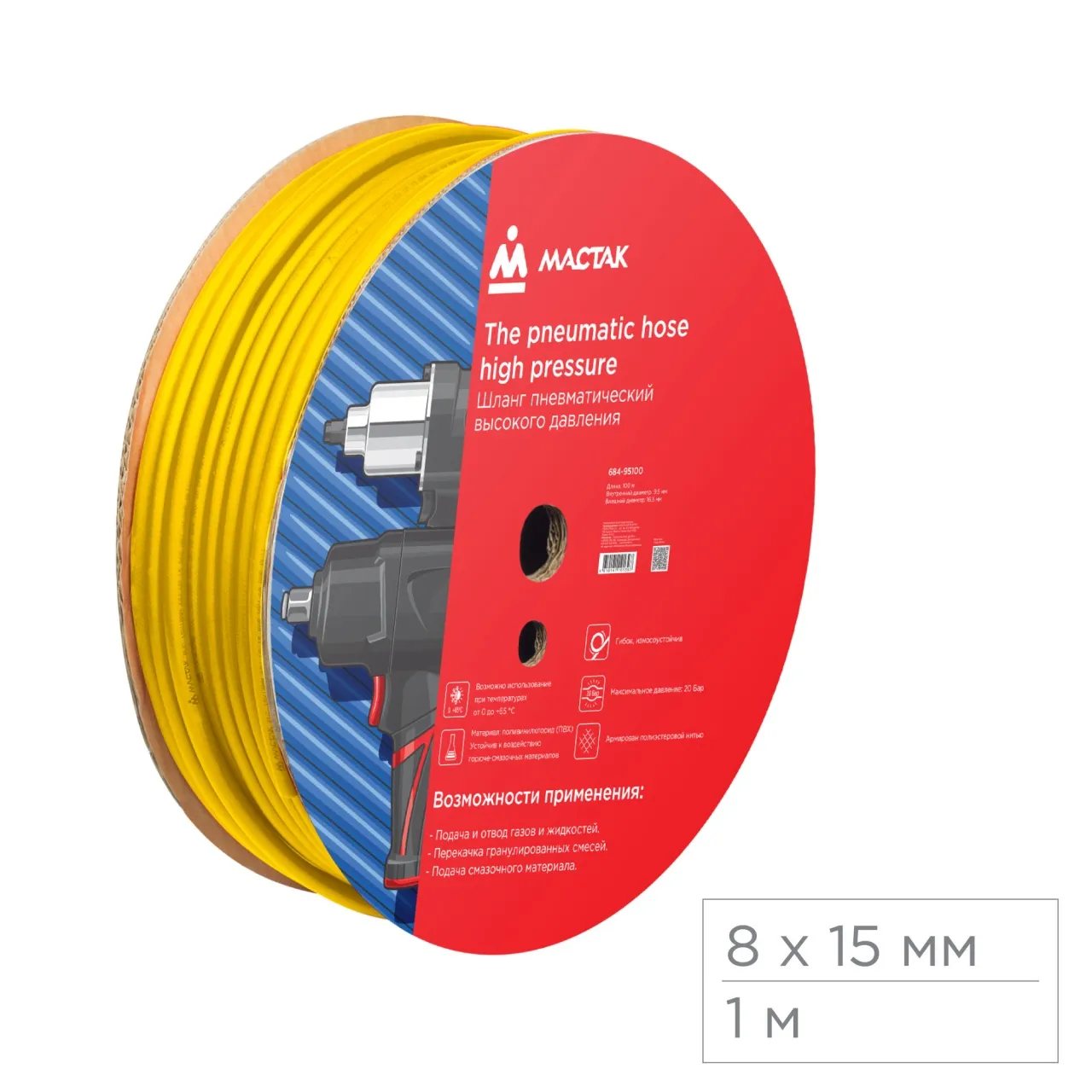 Шланг пневматический 8x15 мм, 1 м, ПВХ композитный, усиленный МАСТАК 685-08100 наличный и безналичный расчет