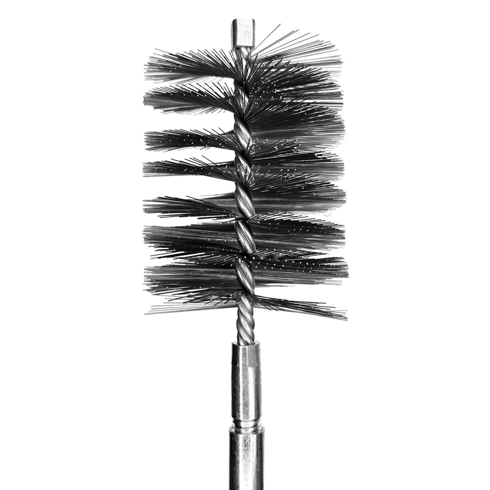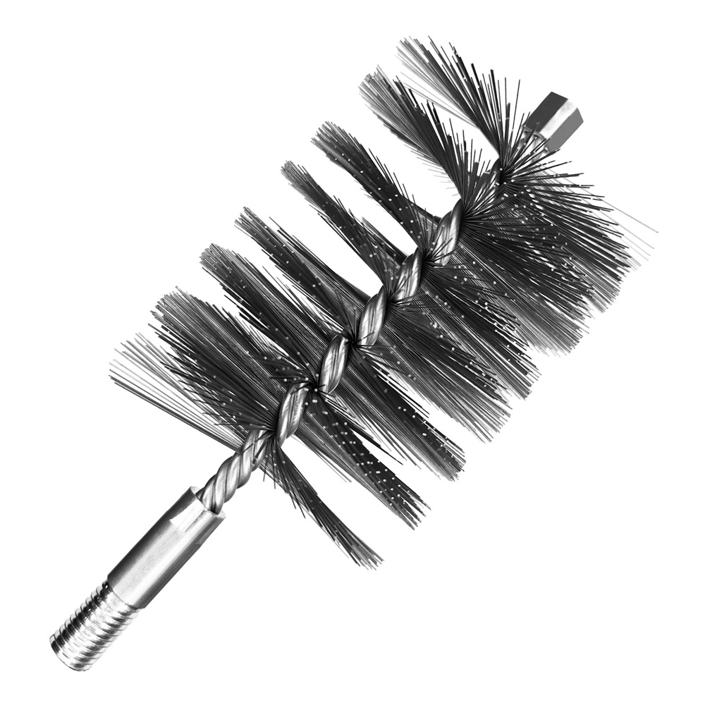 Щетка (ерш) стальная усиленная 80 мм, М12 — это специализированный инструмент, предназначенный для эффективной очистки и обработки внутренней поверхности отверстий в черных металлах.