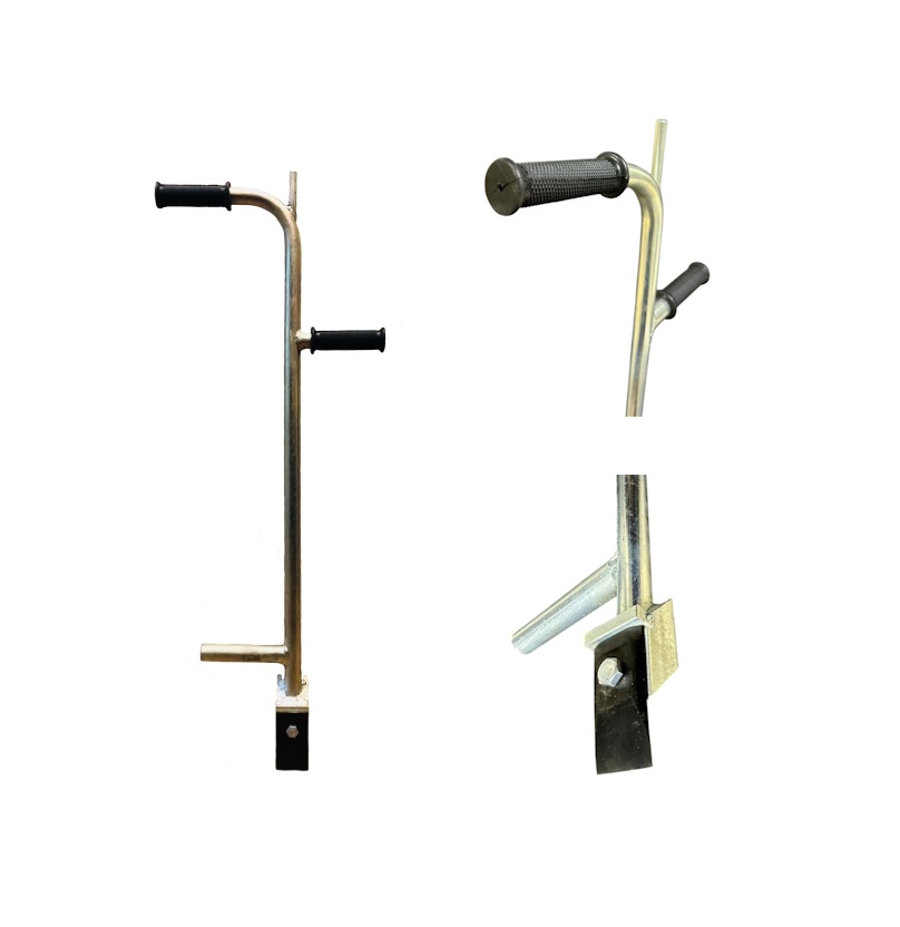 Лом оснащен двумя рукоятками и подножкой и штырем для удара молотком для удобства работы.