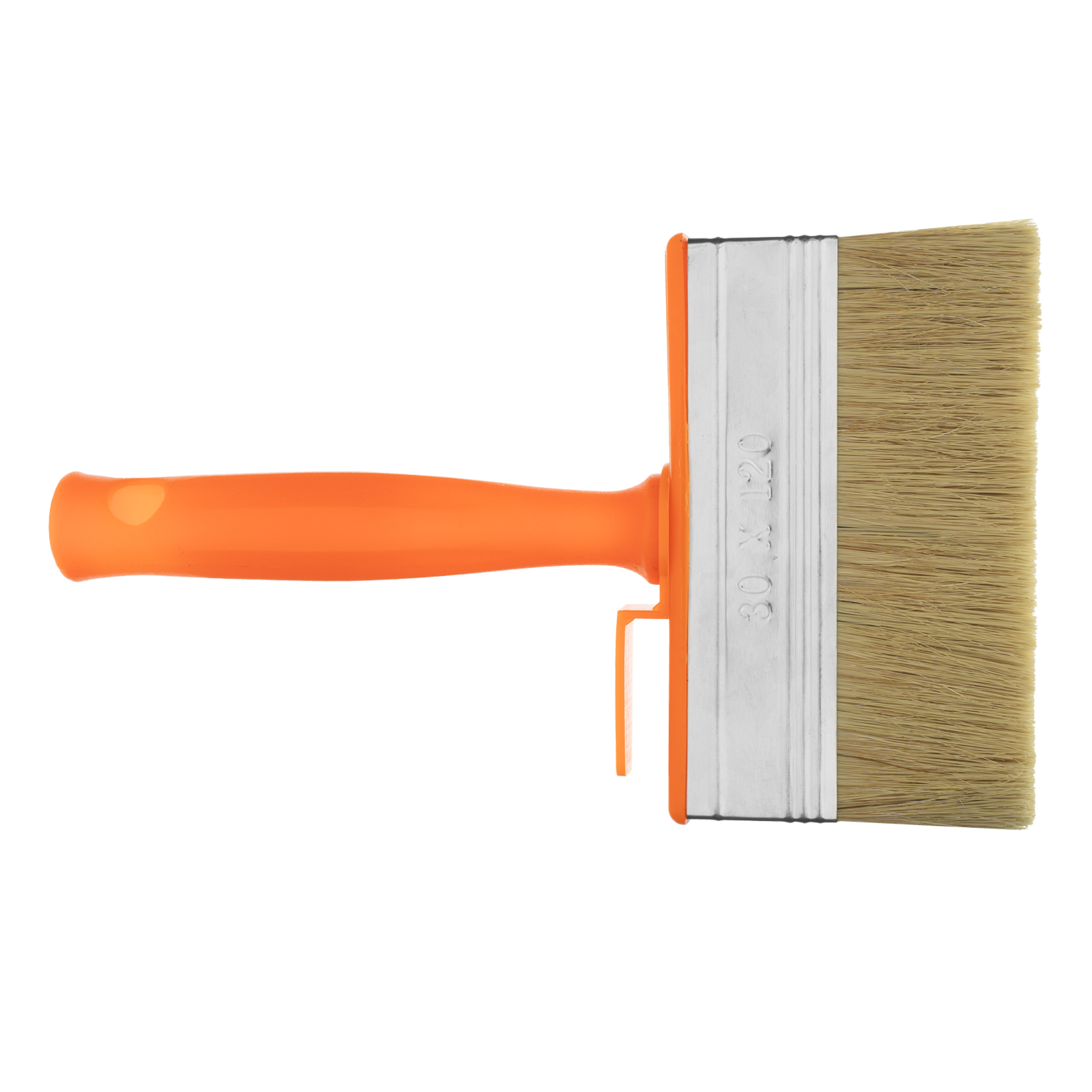 Кисть-ракля Sparta 841068 толщиной 30 мм и шириной 120 мм, с натуральной щетиной, пластмассовыми корпусом и ручкой, используется для малярных работ на участках большой площади, поэтому удобна для обработки стен, потолков и фасадов. Натуральная щетина устойчива к химическому воздействию, поэтому не деформируется и сохраняет упругость при работе с ЛКМ на водной основе, грунтовками, масляными красками и клеящими составами.