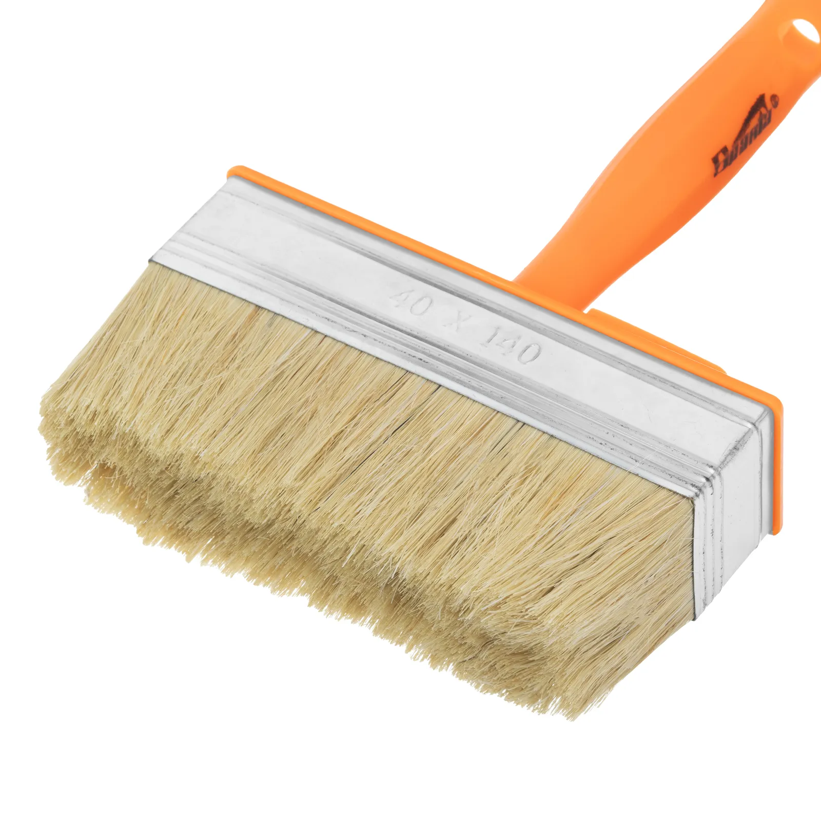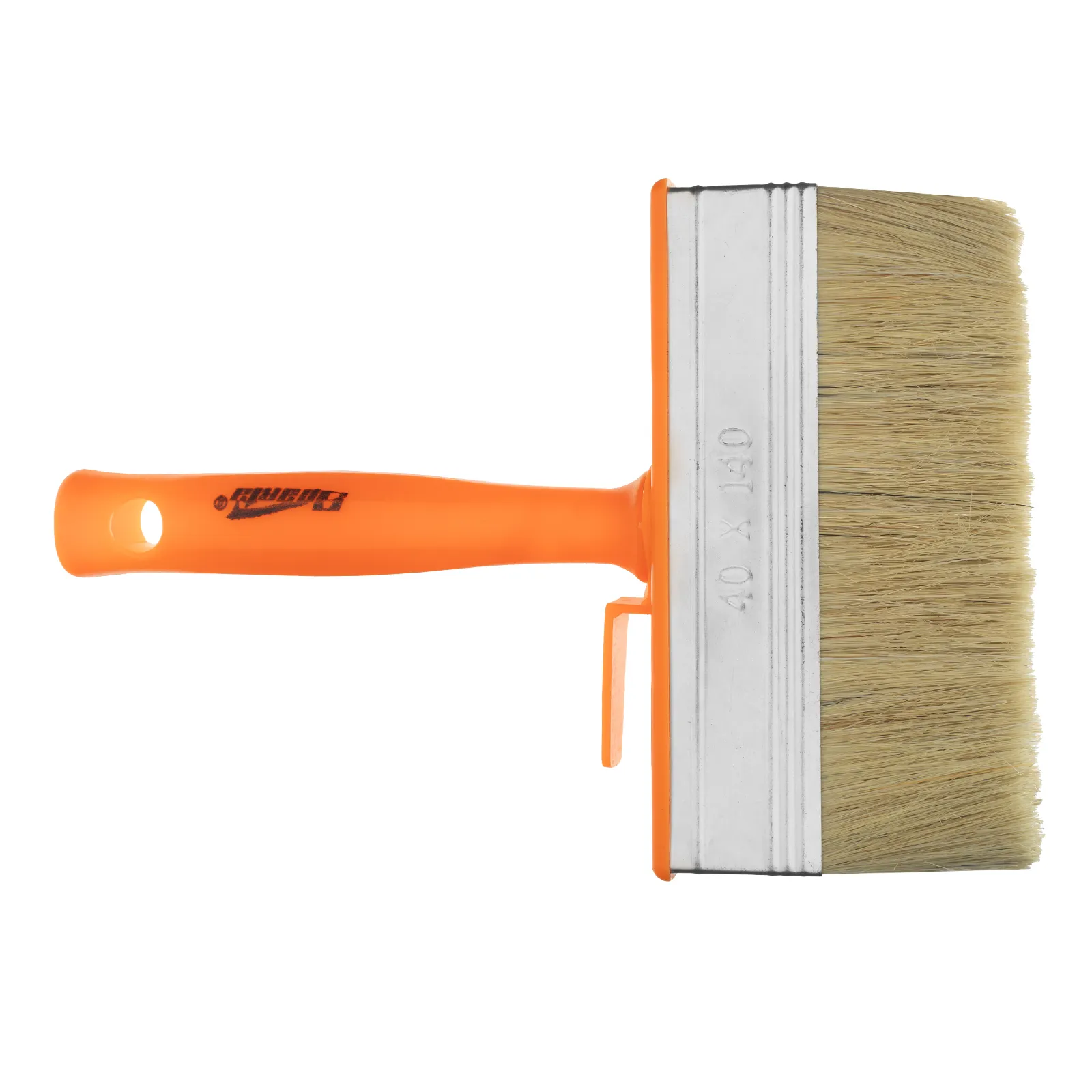 Кисть-ракля Sparta 841069 толщиной 40 мм и шириной 140 мм, с натуральной щетиной, пластмассовыми корпусом и ручкой, используется для малярных работ на участках большой площади, поэтому удобна для обработки стен, потолков и фасадов. Натуральная щетина устойчива к химическому воздействию, поэтому не деформируется и сохраняет упругость при работе с ЛКМ на водной основе, грунтовками, масляными красками и клеящими составами.