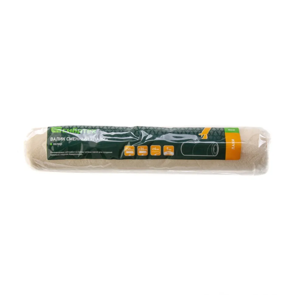 Сменный валик Сибртех «Лаки» 80245 с ворсом 5 мм из велюра, роликом 250 х 36 мм, под ручку 6 мм, подходит к модели Сибртех 80243. За счет шубки из велюра с коротким ворсом он равномерно наносит материал тонким слоем, поэтому оптимален для малярных работ с лаками. Валик шириной 250 мм удобен для окрашивания больших площадей.ПреимуществаБыстрая установка — ролик имеет классическую конструкцию с трубкой внутри, что экономит время при подготовке к работе.Равномерное окрашивание — шубка с обработанными краями и бесшовной структурой не оставляет следов на поверхности.Возможность многократного использования — шубка надежно зафиксирована на ролике методом термического приклеивания.Эффективная и комфортная работа — надетый на бюгель валик свободно вращается, обеспечивая наивысшую отдачу лака или краски на поверхность.Надежность — валик изготовлен по технологии нового поколения Termofusion Coinjection, что повышает его ресурс и качество окрашивания.
