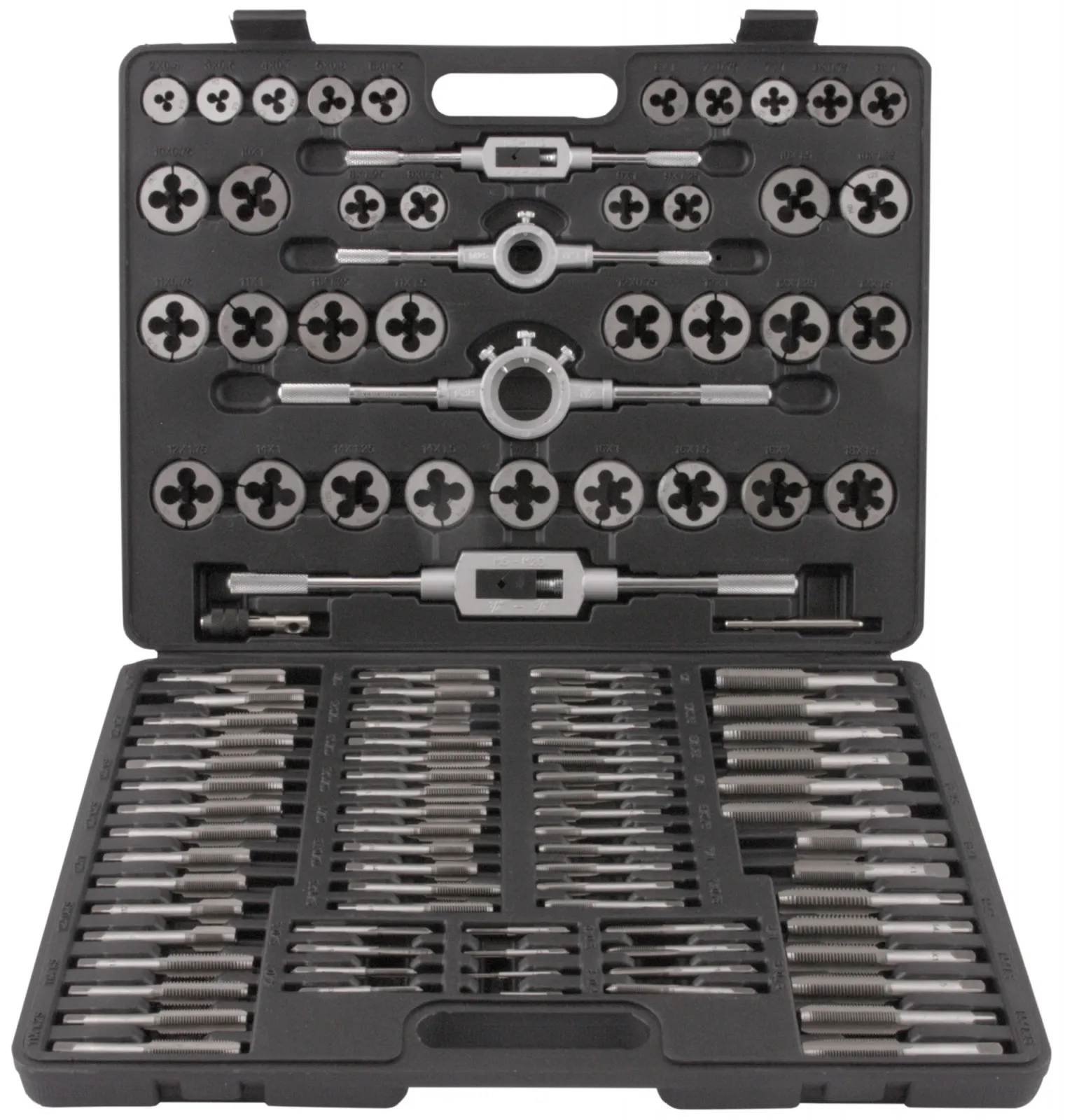 Набор метчиков и плашек THORVIK® предназначен для восстановления поврежденных и нарезания внутренних и наружных резьб. Режущие инструменты изготовлены из высокоуглеродистой стали.