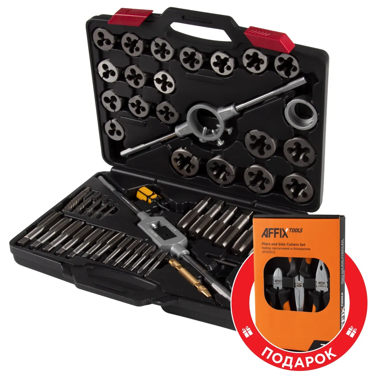 Материалы – инструментальная быстрорежущая сталь SK5, сталь Cr-V, алюминий, латунь, пластик PE-HD (кейс);