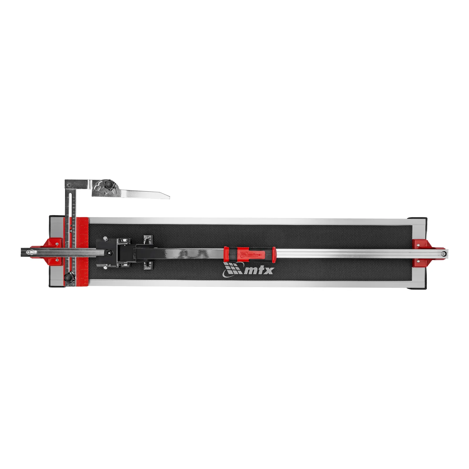 Рельсовый плиткорез MTX 87691 способен резать плитку длиной до 900 мм и толщиной до 16 мм для придания ей необходимых размеров. Мощный разделитель справляется с резкой не только керамической, но и керамогранитной плитки. Продуманная конструкция позволяет производить разлом в любой точке поверхности плитки. Инструмент используется во время проведения облицовочных работ.