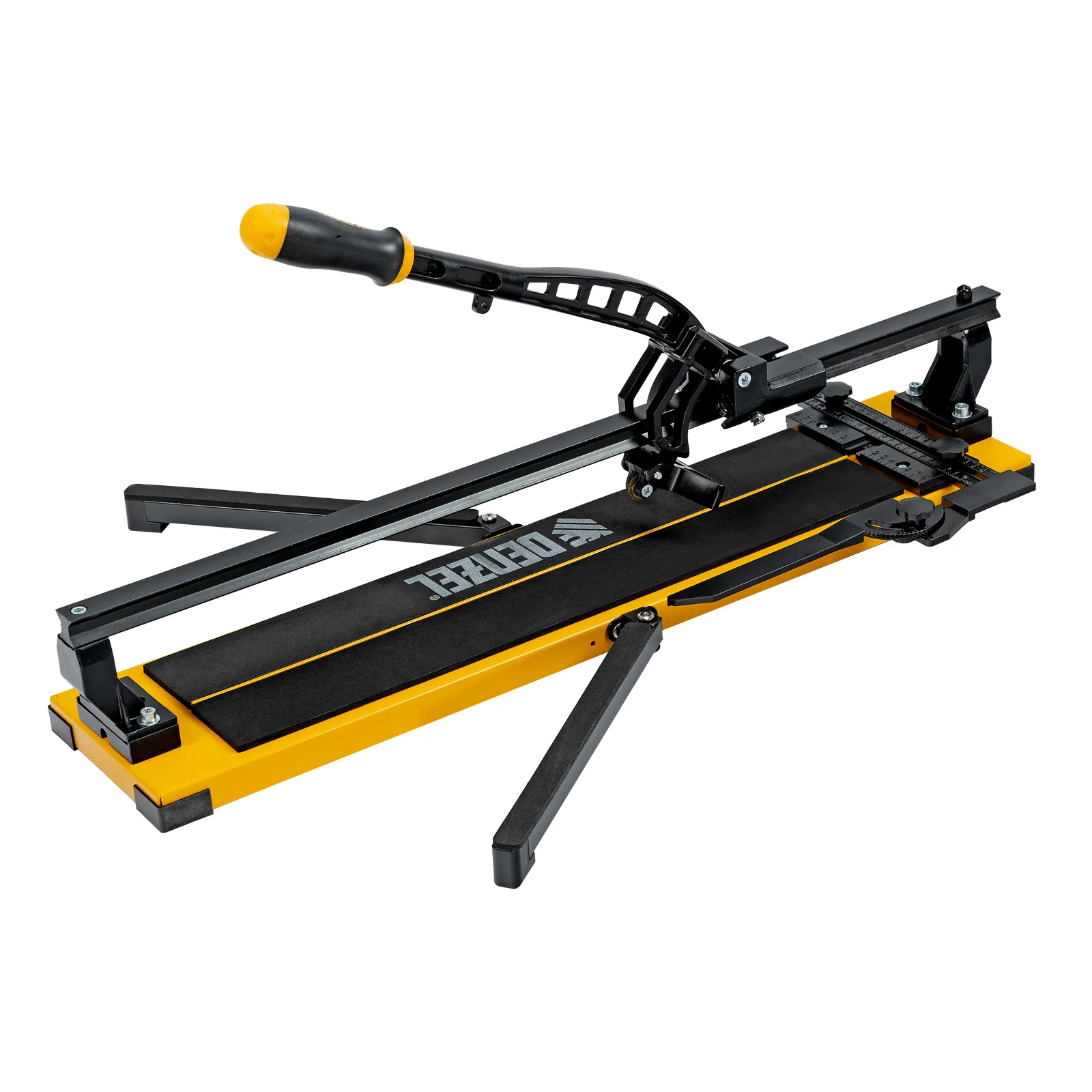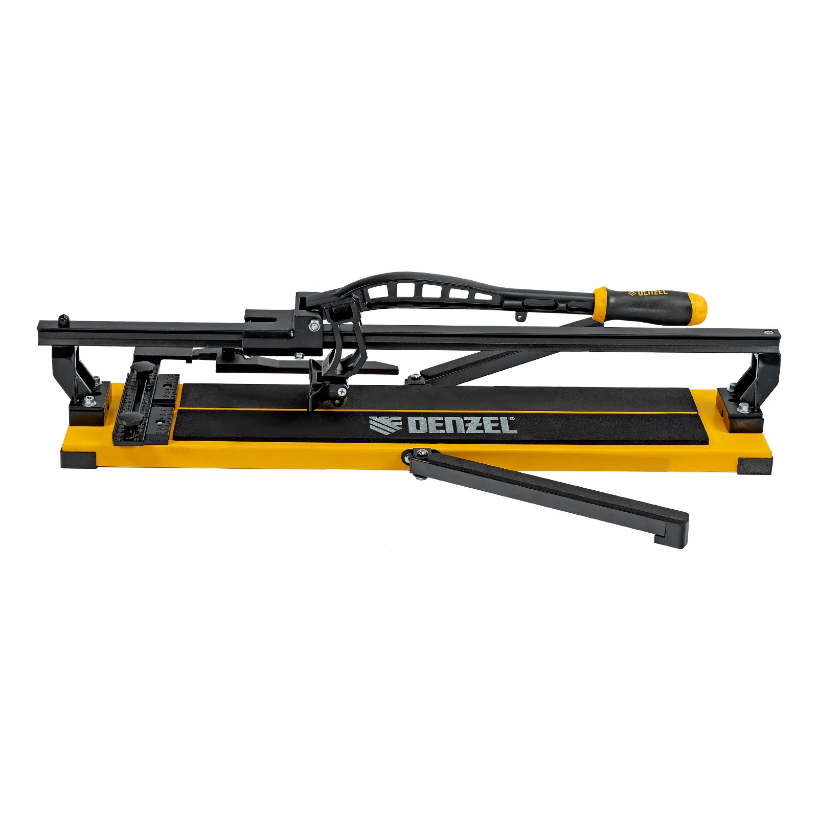 Ручной плиткорез Denzel 877014 с рельсовой направляющей и стальной станиной, с кареткой на подшипниках и усиленной рукояткой-пеналом, предназначен для прямой и диагональной резки керамической плитки и керамогранита длиной до 600 мм и толщиной до 16 мм. Раздвижные упоры упрощают работу с плиткой большого размера. Инструмент используется для проведения отделочных работ.