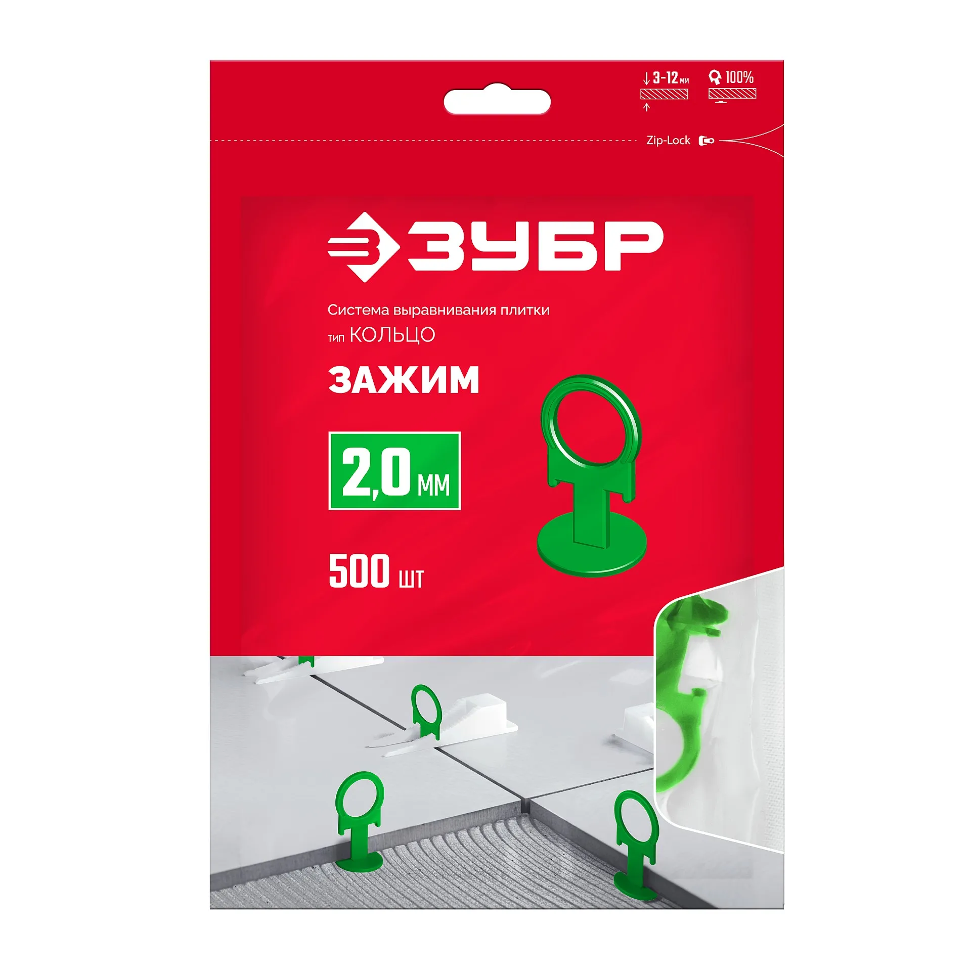 Сделан из прочного пластика, он не деформируется при зажимании и надежно удерживает плитку в единой плоскости, обеспечивая отсутствие проседания во время высыхания плиточного клея. Позволяет работать с плиткой толщиной от 3 до 12 мм.