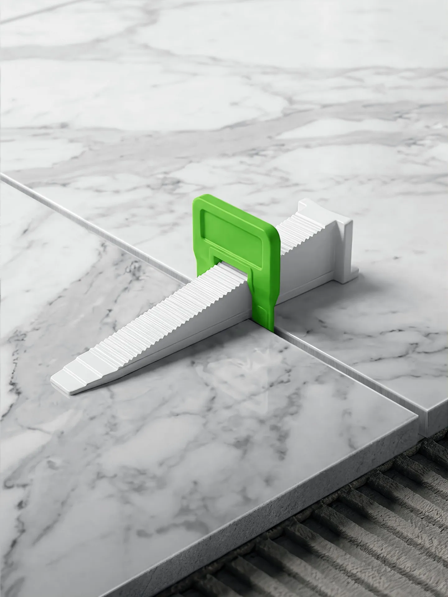 Сделан из прочного пластика, он не деформируется при зажимании и надежно удерживает плитку в единой плоскости, обеспечивая отсутствие проседания во время высыхания плиточного клея. Позволяет работать с плиткой толщиной от 3 до 12 мм.