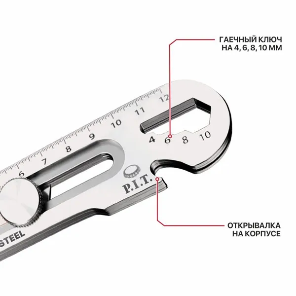 Для удобства работы на корпус ножа нанесена линейка для разметки при раскройке материала. В задней части корпуса расположена открывалка, поэтому нож пригодится также дома и на отдыхе.