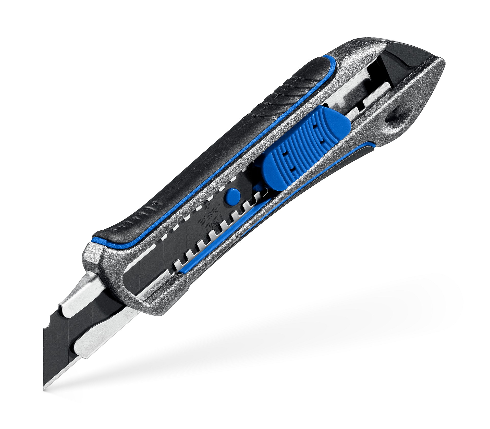 Профессиональный металлический нож с обрезиненным корпусом применяется для разрезания различных материалов: линолеума, ковровых покрытий, гипсолитовых плит, гипсокартона, кровельных материалов, пластика, дерева и т.д.