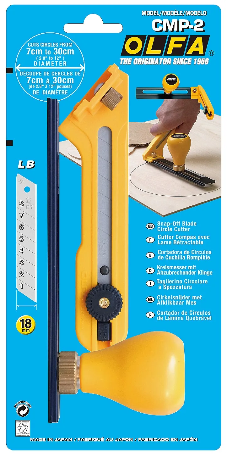 Для создания идеальных кругов из различного материала используйте циркульный нож OLFA CMP-2, чтобы добиться особой точности заготовки. Этот инструмент прост в использовании и регулируется с помощью ползунка. Подходит для создания кругов диаметром от 7 до 30 см.