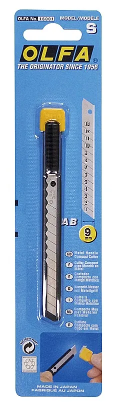 Компактный нож OLFA S с пластмассовой съемной клипсой. Металлический корпус инструмента обеспечивает надежность и длительный срок службы.