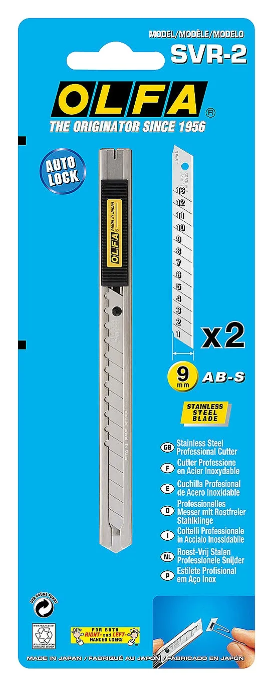 Нож OLFA SVR-2 из нержавеющей стали — новый уровень точной резки. Обладает всеми функциями, которые Вам нравятся в ноже из нержавеющей стали SVR-1, но с улучшенным контролем реза и большей безопасностью благодаря автоблокировке лезвия.